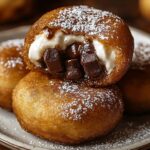 Beignets moelleux garnis de chocolat fondu, guimauves grillées et miettes de biscuits Graham, une gourmandise irrésistible inspirée des S’mores.