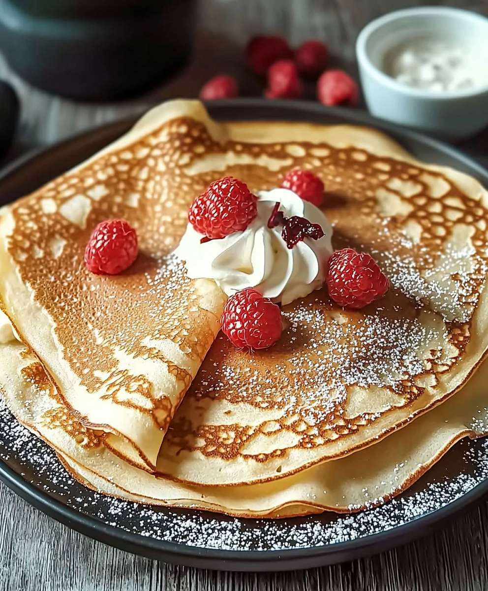 De délicieuses crêpes françaises, légères et moelleuses, parfaites pour un petit-déjeuner, un brunch ou un dessert. Faciles à réaliser et personnalisables avec des garnitures sucrées ou salées.